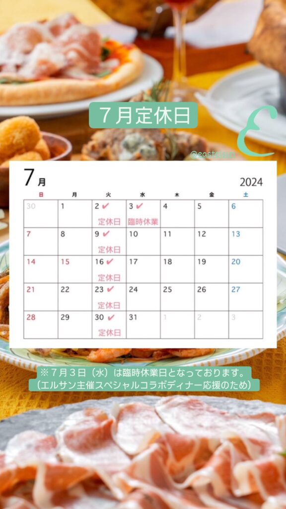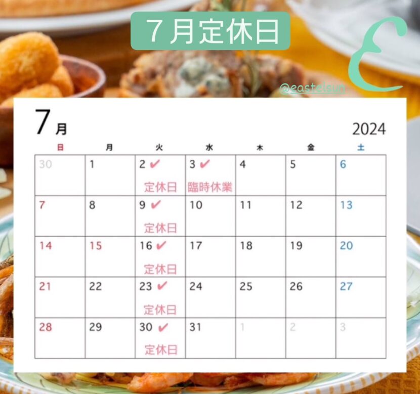 7月3日(水)が臨時休店日となります。