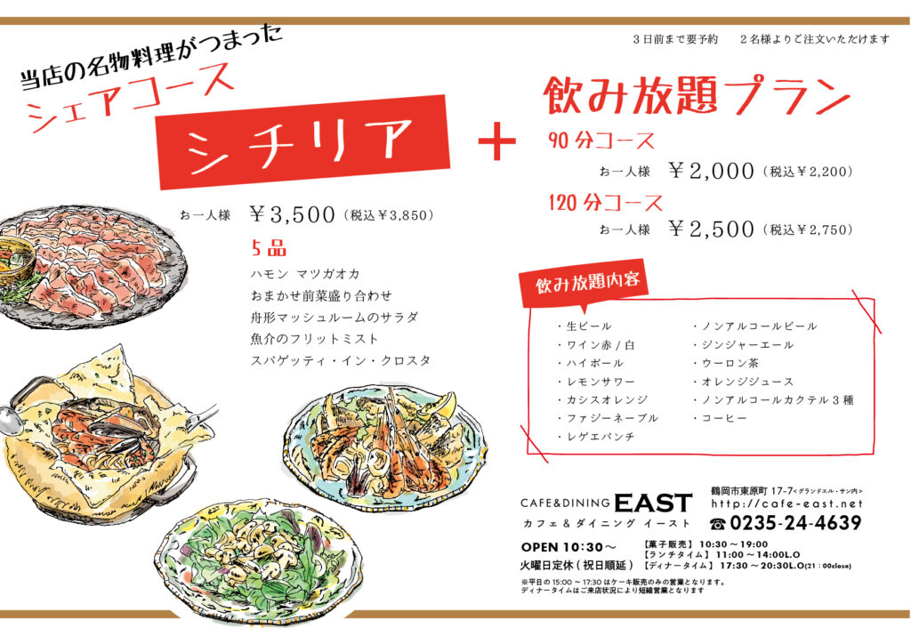 シェアコース「シチリア」に飲み放題90分をお付けすると