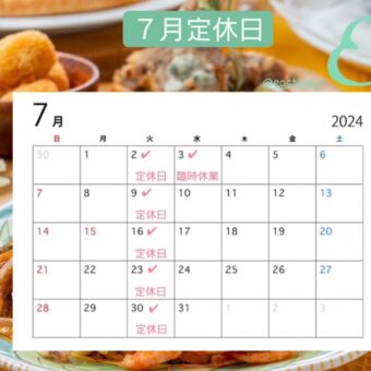 7月の定休日のお知らせ