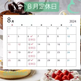 8月定休日のお知らせ